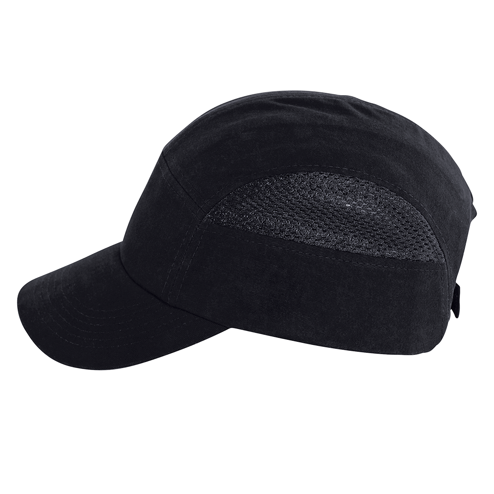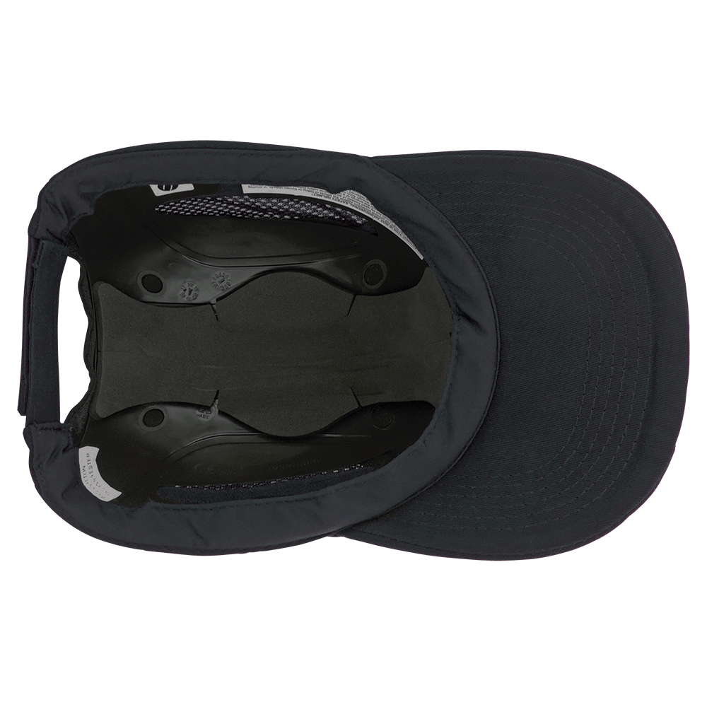 • Gorra color negro. Antigolpes y gorra de béisbol dos en una. • Cojín interior de espuma suave para un uso cómodo. • La resistente carcasa interior ventilada de ABS es extraíble, por lo que la tapa exterior es completamente lavable. • El tamaño se puede ajustar con una correa de velcro para proporcionar un ajuste rápido y seguro. • Los orificios transpirables en el forro combinan con dos paneles de malla en la tapa para brindar ventilación para mayor frescura y comodidad. • Ideal para lectores de medidores, procesamiento de alimentos, aerolíneas y otras industrias que no requieren protección total con casco.