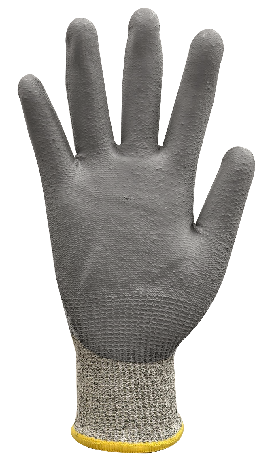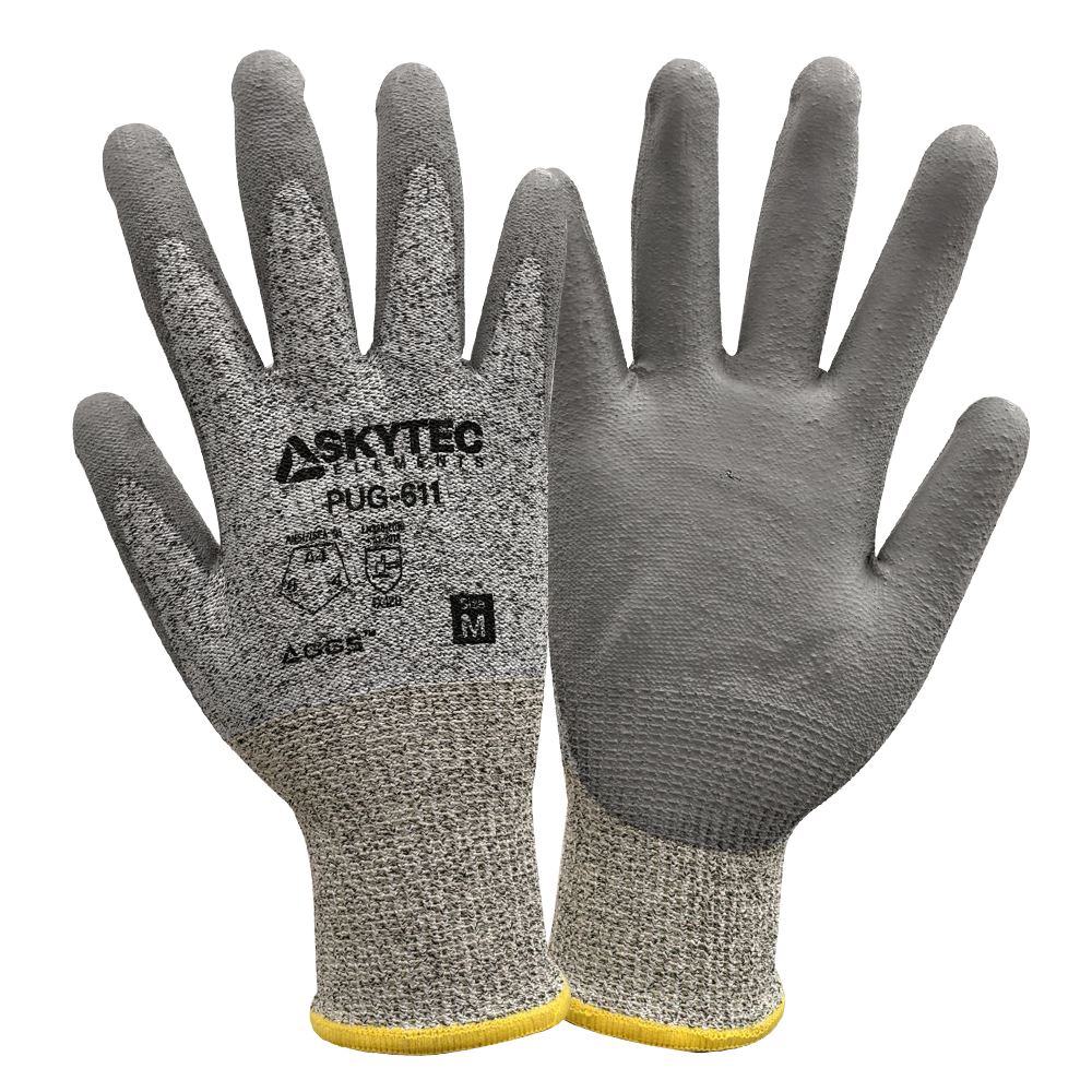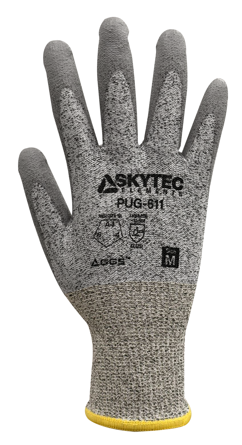 Guante sin costuras y resistente a cortes cuenta con una cubierta de fibra HPPE de calibre 13 con acabado sal y pimienta. La palma tiene un revestimiento de poliuretano gris con un acabado suave. Una cómoda muñeca tejida proporciona un ajuste seguro. Cumple con las normas antiestáticas/electrostáticas para su uso en un área protegida contra descargas electroestáticas.